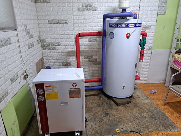 | 온도조절기 A4표시 | 지열수 유량확인, 지열수 배관 공기 빼기 작업, 냉매누설 확인, 순환펌프 가동 확인 | |