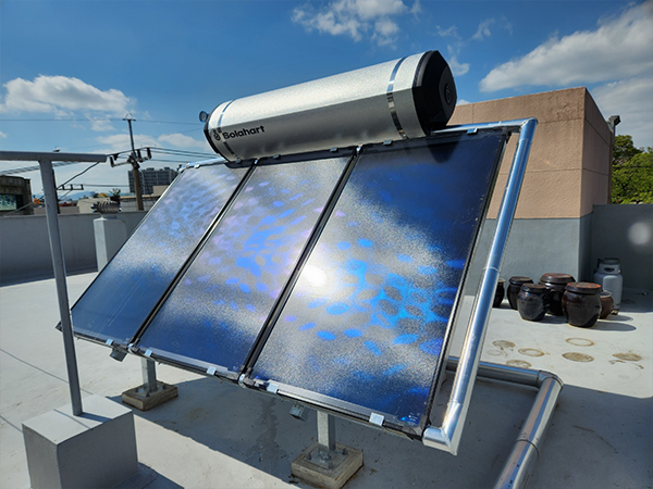 태양이 지구로 방사하는 열에너지를 이용해 온수를 생산하는 장치입니다. 태양열은 온실가스 배출 없는 무공해 에너지이고, 기존의 화석연료에 비해 생산 가능한 지역적 편중이 적고, 다양한 적용 및 이용이 가능하다는 장점이 있습니다.